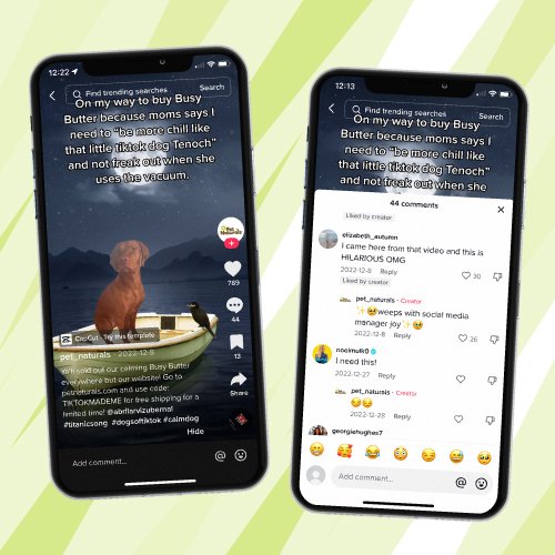 We could have liked and commented once and called it a day – but we decided to test the “all in” approach by fully immersing ourselves in the platform. We not only responded to the video, but our team spent 3 days responding to all user questions and comments about the product. We made very specific and trending video responses to the viral video that we later turned into ads. And we surprised and delighted the consumer with custom gifts and products for their pup. For 3 days we watched the video continue to gain traction including being reposted by Barstool sports. All in all, we saw a massive uptick in sales, new followers, and awareness of the brand, far more than we would have if we created the original video ourselves.